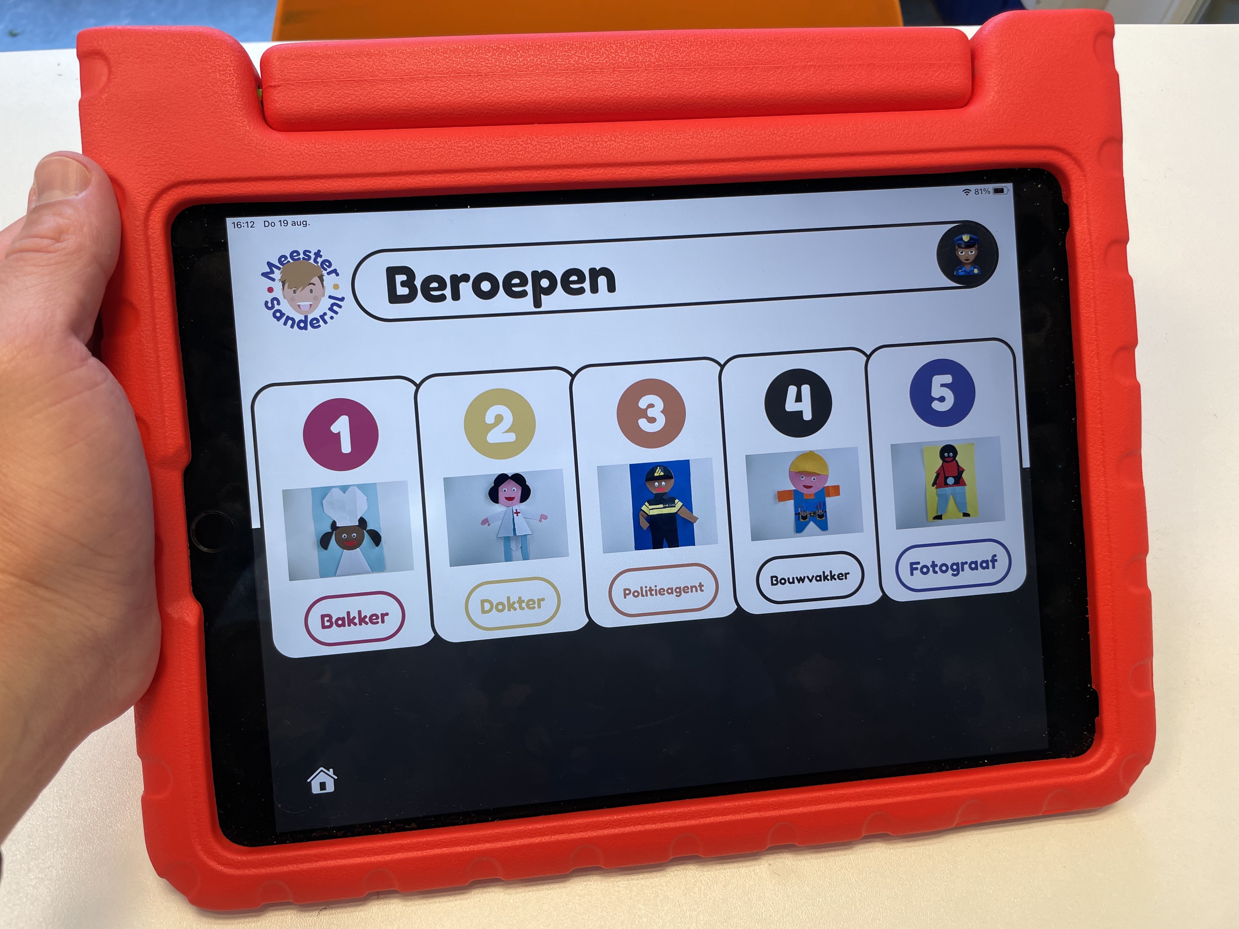 In de app My Profession moeten kinderen het beroep en het voorwerp bij elkaar zoeken. De opdrachten kunnen ingesproken worden door de eigen leerkracht. Hierdoor kan je het spel eenvoudiger maken voor de kinderen in je klas.
