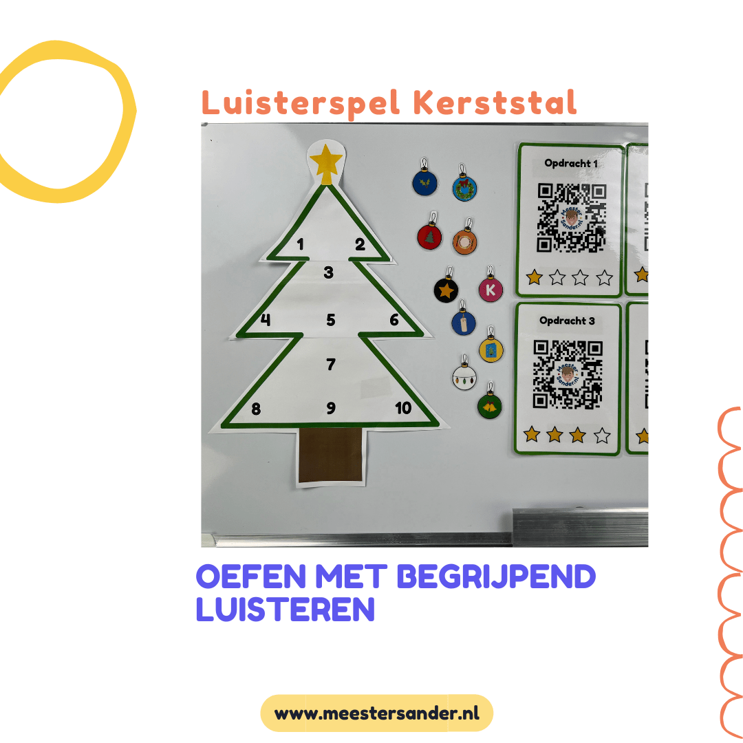 Dit luisterspel sluit helemaal aan bij het thema Kerst! De kinderen scannen de QR code en luisteren naar Meester Sander. Ze krijgen opdrachten om kerstballen op de juiste plek in de kerstboom te hangen. Met de antwoordkaarten kunnen de kinderen de opdrachten zelf nakijken.